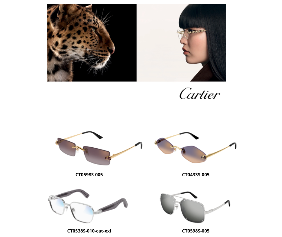 Chez Cartier, l’approche s’inscrit dans la continuité de l’excellence joaillière, appliquée à l’univers de l’eyewear. Cartier continue de marier l’héritage joaillier à la rigueur optique, pour des pièces de luxe à mi-chemin entre bijou et instrument visuel.